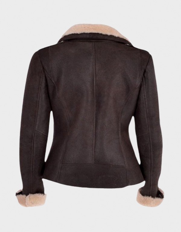Women’s Brown Leather Motorcycle Shearling Jacket