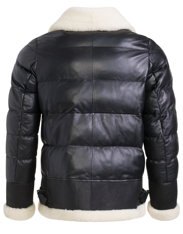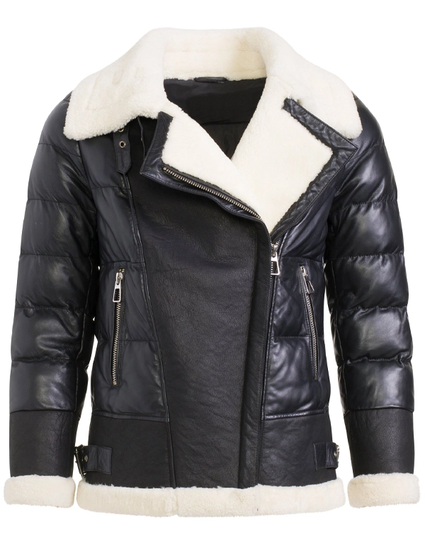 • Leather puffer & shearling combo sleeves