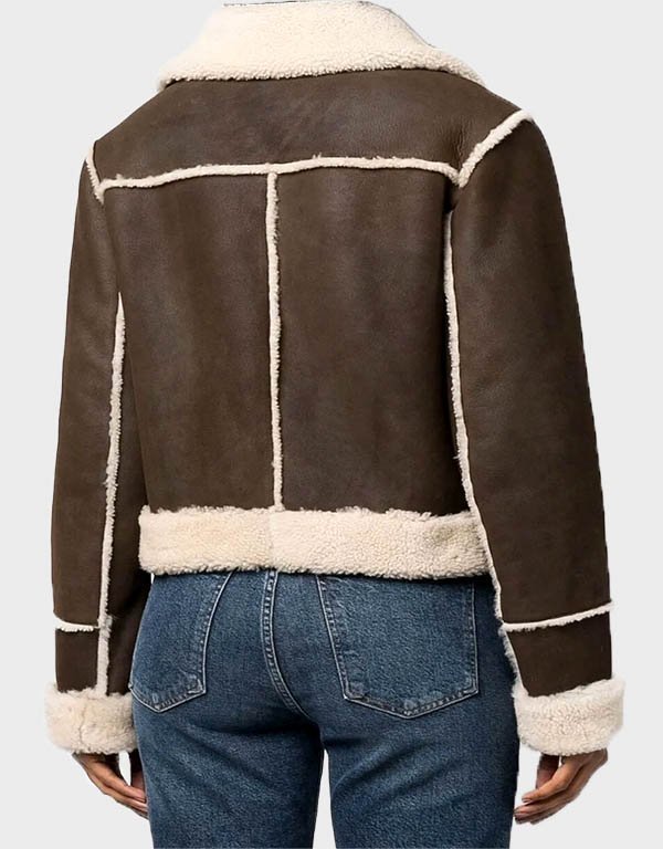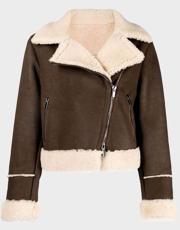 Elevate your winter wardrobe with the Women In the Dark S04 Chelsea Aviator Jacket, a perfect blend of timeless style and unmatched comfort. Crafted from 100% premium lambskin leather, this aviator jacket offers a sleek, brown exterior paired with luxurious beige shearling lining for ultimate warmth. The oversized shearling fur collar not only adds a touch of elegance but also keeps you cozy during colder months ❄️.