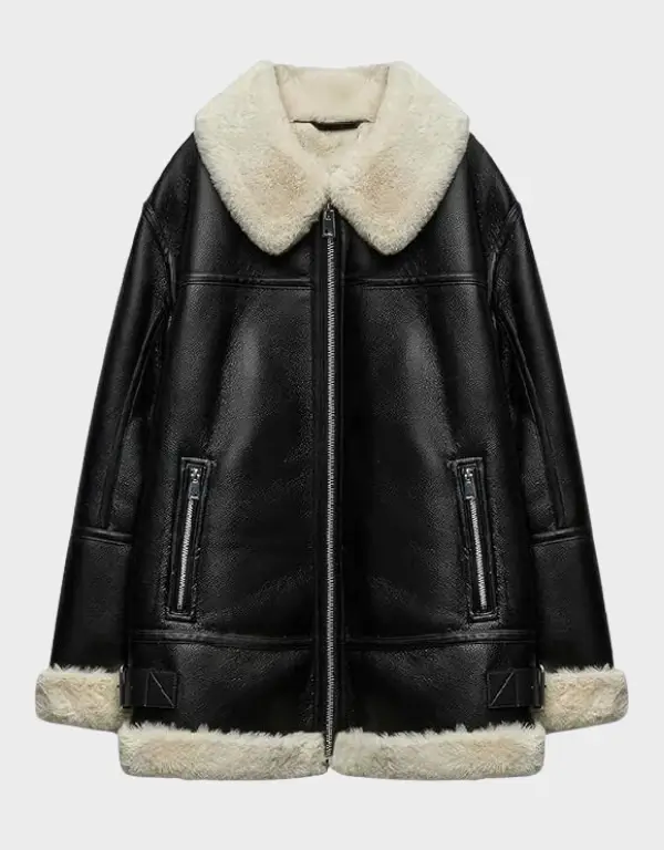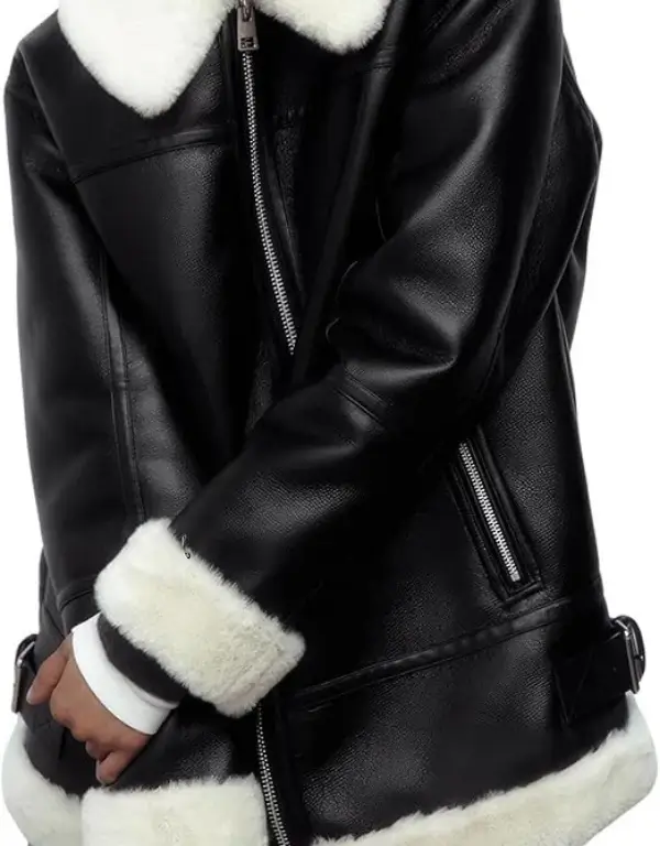 Elevate your winter wardrobe with this Women’s Black Genuine Sheepskin B3 Bomber Leather Jacket from Shearling Jacket Hub. Crafted from 100% genuine sheepskin leather, this jacket offers unparalleled warmth and durability. The luxurious faux shearling lining ensures you stay cozy even in the coldest temperatures, while the faux fur-trimmed cuffs and hem add a touch of elegance.