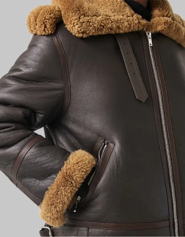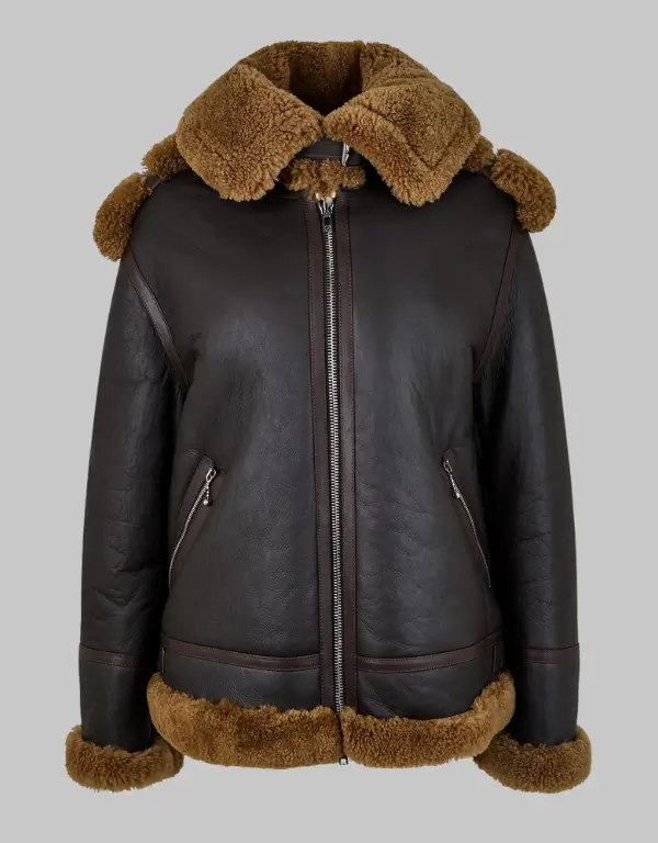 Women’s Brown Real Sheepskin Shearling Aviator Jacket