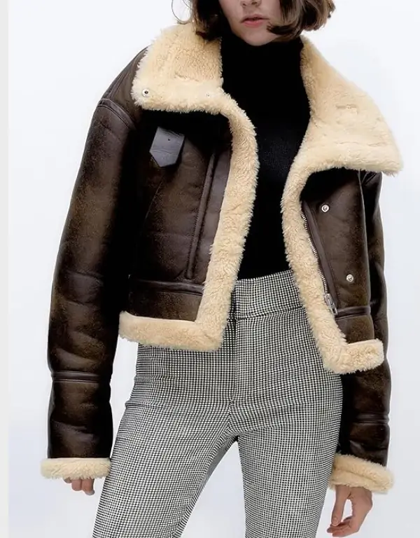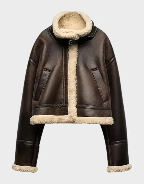 The interior is fully lined with plush shearling, providing reliable insulation without unnecessary bulk. Inspired by traditional aviator and bomber silhouettes, this jacket features a clean front zipper, adjustable neck buckle, and a rich brown leather exterior that pairs effortlessly with jeans, boots, or winter dresses. Whether you’re heading out for casual outings, winter travel, or evening plans, this jacket keeps you warm while maintaining a polished, confident look.